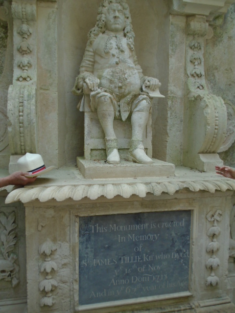The mausoleum was built on the orders of Sir James Tillie, the first owner of Pentillie who built the Castle in 1698. He ordered that on his death he was to be placed in the mausoleum, dressed in his best clothes and sittign on a chair. He intended to sit there until his resurrection, which he expected to be within two years and then intended to return to Pentillie. He sat there for a full two years while his remains and the roof of the mausoleum deteriorated. His mortal remains were finally buried but it was not know whether at the mausoleum or the nearby churchyard at St Mellion. A marble statue was erected in his place and remains in the same commanding spot today. During the restoration of the mausoleum in 2012 a vault was uncovered and unbelievably the remains of Sir James Tillie found.